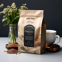 कस्टम डिज़ाइन 340 ग्राम 500 ग्राम फुल कलर हर्मेटिक हेसियन सीलबंद ब्लैक स्टैंड अप क्राफ्ट पेपर फ्लैट बॉटम कॉफी बैग एयर वाल्व के साथ